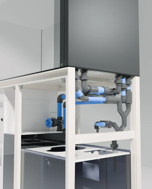 • Incluye ATO acrílico con válvula de flotador preinstalada para recargas automáticas.