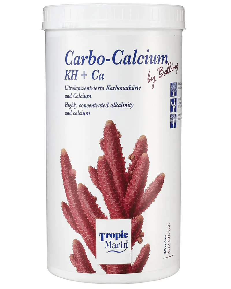 Tropic Marin Carbo-Calcium contiene una proporción equilibrada de calcio y carbonato (alcalinidad) en una sola solución. Tradicionalmente se requieren dos o más soluciones, pero Carbo-Calcium se basa en procesos biológicos para liberar calcio y carbonato de un solo líquido sin la preocupación de la precipitación ni la pérdida de oxígeno. No genera subproductos ni excesos indeseados de CO2, fosfatos, nitratos u otros contaminantes, a la vez que mantiene un pH estable