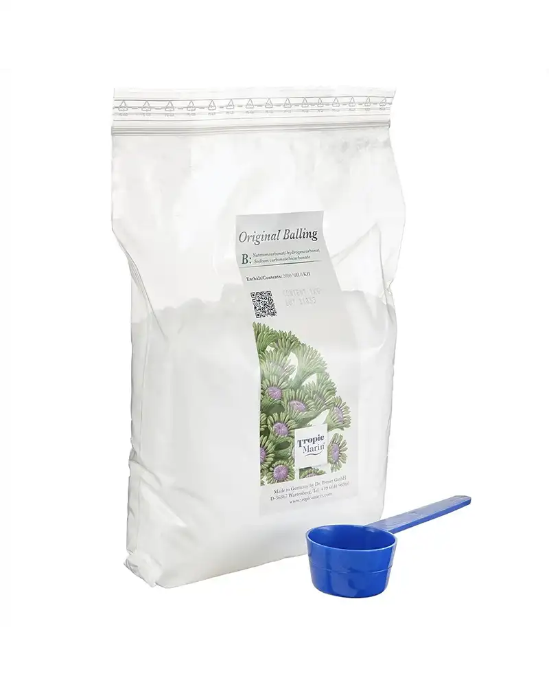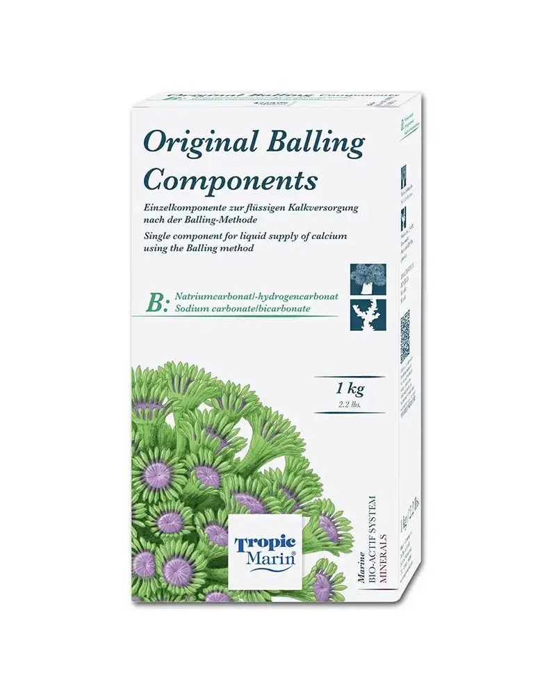 Uno de los métodos originales de tres partes para la preparación de bolas, los componentes de Tropic Marin aportan calcio, alcalinidad y sal marina sin cloruro de sodio para mantener el equilibrio esencial de elementos en el agua de su acuario. Esta mezcla equilibrada permite un rápido crecimiento de los esqueletos de coral, a la vez que conserva los oligoelementos principales y secundarios para evitar la disminución de los elementos necesarios, como ocurre con los regímenes de dosificación tradicionales de dos partes.