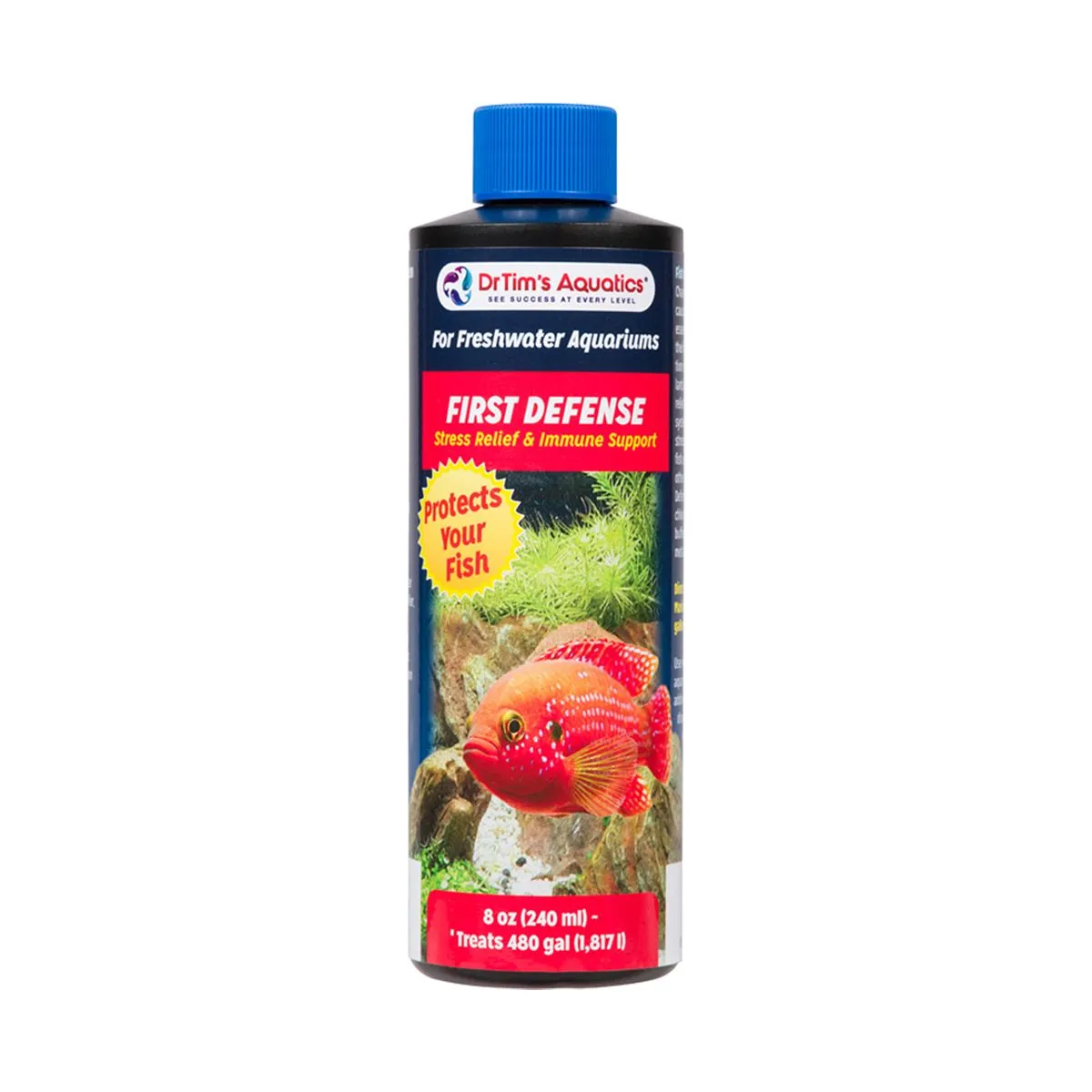 Cambiar el entorno de un pez causa estrés que le priva de nutrientes esenciales y puede debilitar su sistema inmunitario. First Defense está científicamente diseñado para aliviar el estrés y fortalecer el sistema inmunitario, ayudando a los peces a lidiar con el estrés causado por el envasado y el transporte desde la tienda hasta el acuario, los cambios de agua, la incorporación de nuevos peces, el tratamiento de enfermedades y otros cambios ambientales.