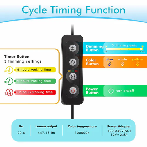 Esta luz marina regulable Hygger ofrece un espectro completo comprobado, que incluye luz UV, violeta, azul, roja, blanca y verde. La luz azul estimula la producción de vitamina D3, lo que ayuda a los corales a absorber calcio y a mostrar colores más brillantes. La luz UV fortalece los sistemas de defensa de las plantas, mientras que la luz violeta favorece el crecimiento saludable de los peces. Las luces blanca y roja aceleran el crecimiento de los corales. La luz proporciona una cobertura uniforme de espectro completo, creando hermosos efectos de iluminación para acuarios marinos.