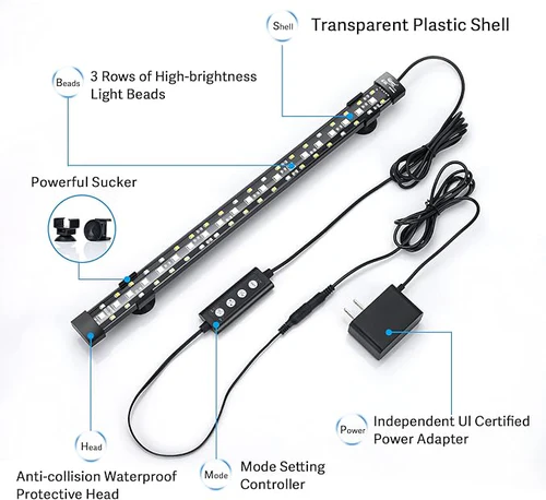 - Múltiples opciones de instalación: Colóquelo en cualquier lugar del tanque, debajo de la cubierta o úselo como luz oculta. Resistente al agua IP68 y fácil de limpiar.