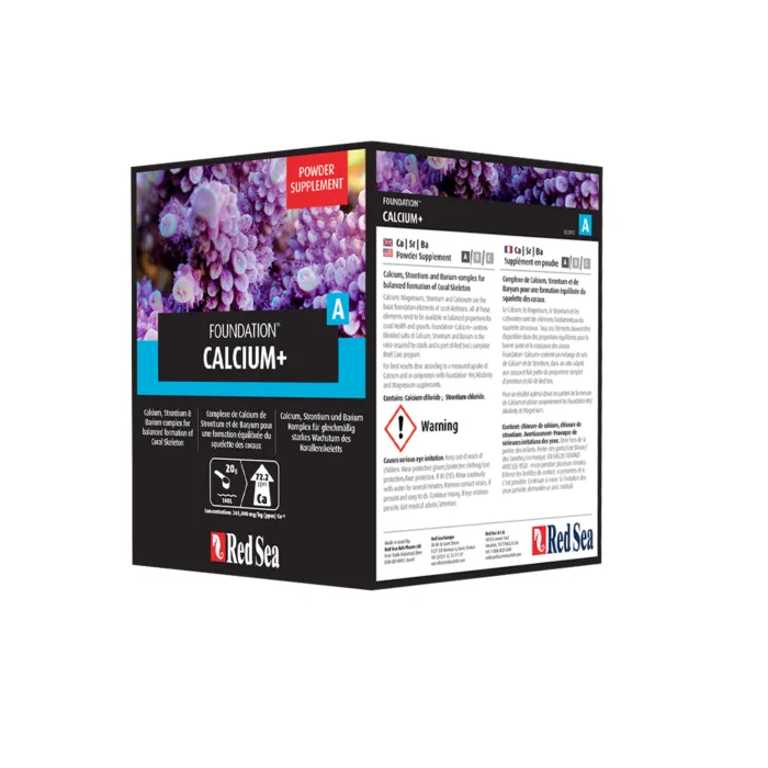 Foundation A Calcium+ es una mezcla equilibrada de calcio, estroncio y bario necesarios para el desarrollo del esqueleto del coral, en proporciones equilibradas en una mezcla compleja como parte del Programa de la Fundación Arrecifes del Mar Rojo.
